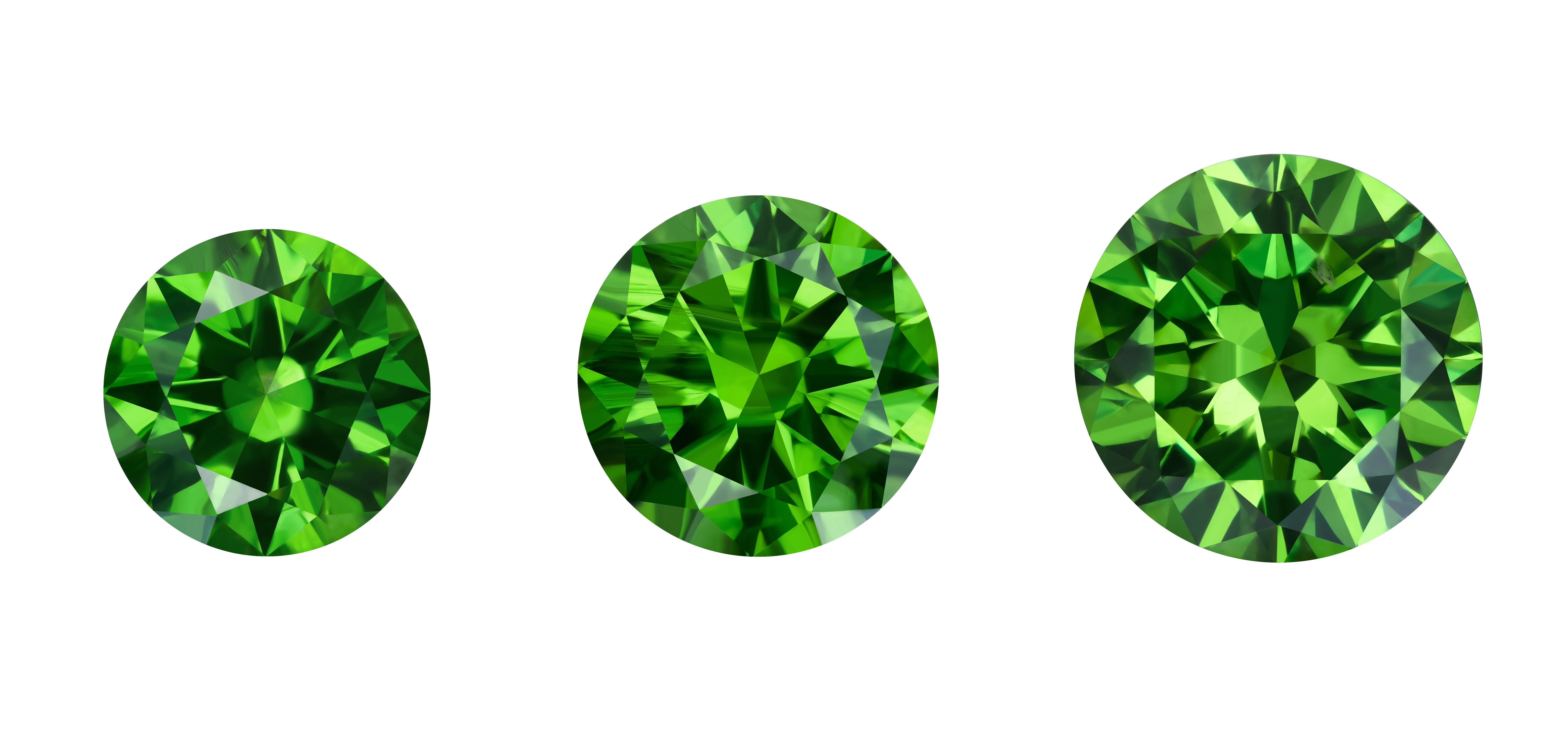 Демантоид имеет свою особенную цветовую палитру от зеленовато-желтого до яркого-зеленого, а благодаря его исключительной игре или «fire», в ограненном камне каждая грань проявляет разные оттенки основного цвета, создавая россыпь драгоценных искр всех цветов радуги. Для уральских демантоидов характерны радиально расположенные волокнистые включения золотисто-желтых кристаллов биссолита, значительно увеличивающие ценность камня.