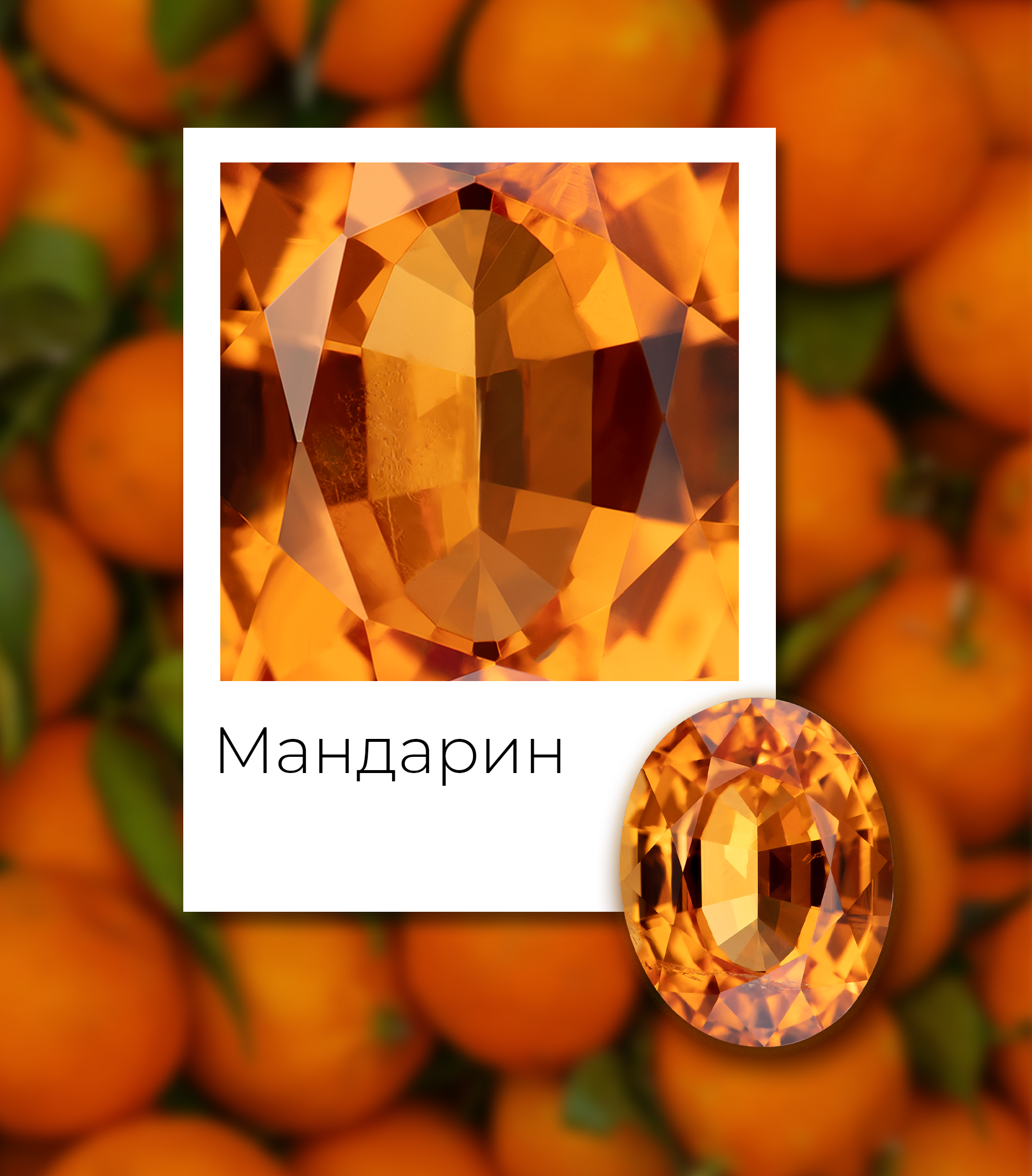 Наиболее ценным из них является Мандарин. Часто так называют и сами камни данного оттенка, подчеркивая таким образом особое положение чистых, ярко-оранжевых спессартинов.