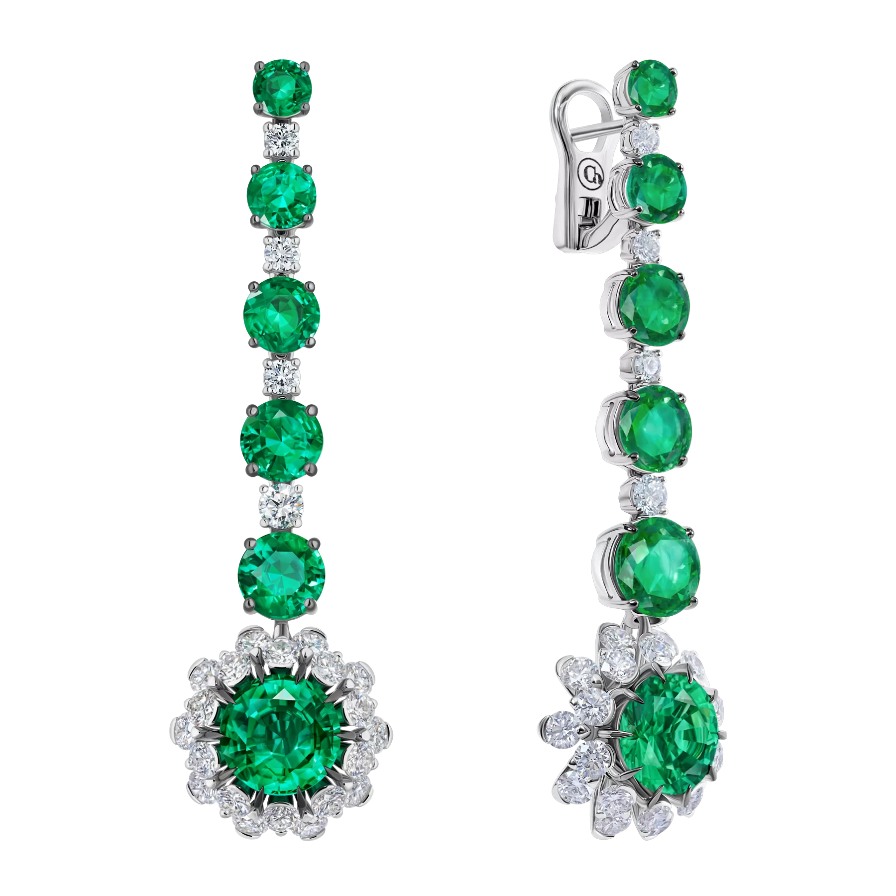 Серьги из коллекции Royal, центральный камень: 2 изумруда огранки «груша» весом 32,0 ct, инкрустация: 330 бриллианта 5,62 ct, 26 изумруда 2,85 ct.
