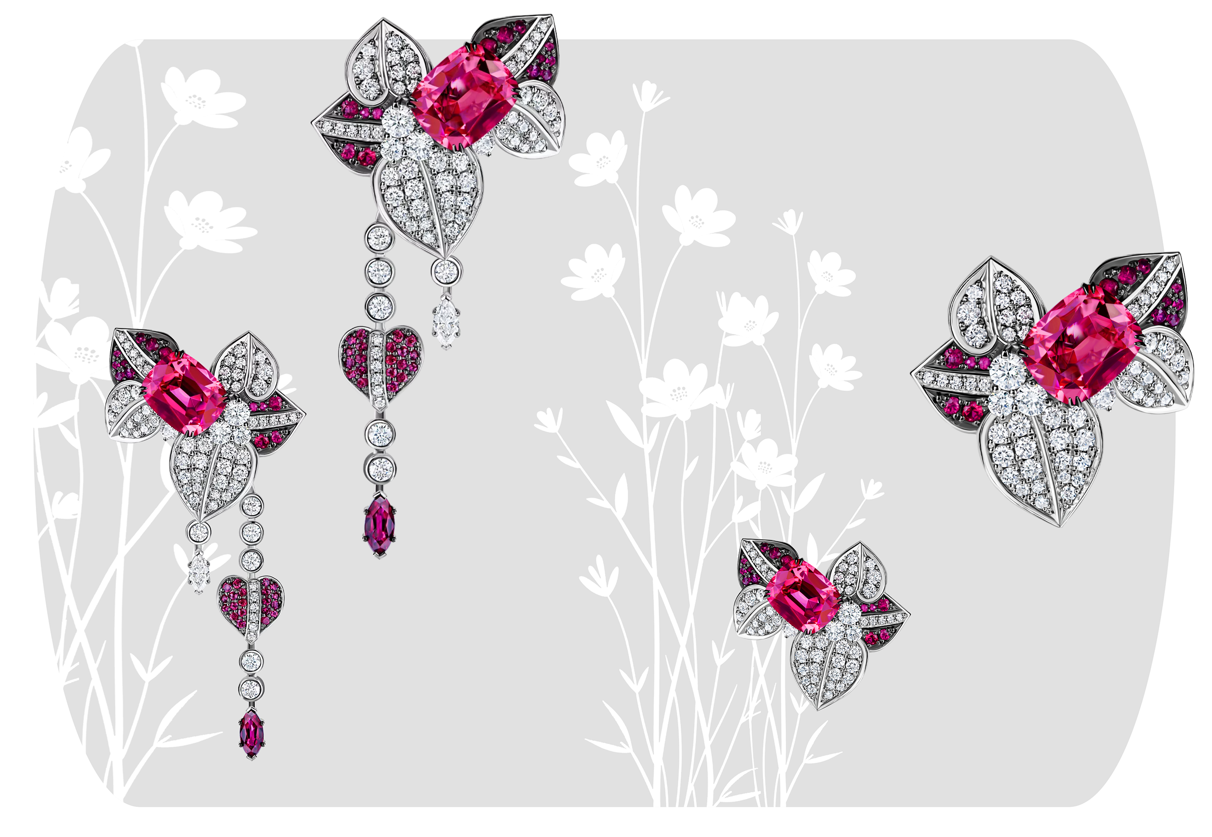 Серьги «Королева сердец» – яркое дополнение коллекции Flora, символизирующее свободу и возрождение. Дизайн украшения эклектичен в своей асимметрии, но при этом отражает особую эстетику, которую могут привнести только драгоценные камни. Ювелиры, соединив в серьгах розовые шпинели, алые рубины и бесцветные бриллианты, наделили аксессуар природной выразительностью и индивидуальностью. В украшении предусмотрены трансформационные мотивы. Благодаря съемным бриллиантово-рубиновым подвесам серьги видоизменяются до максимально лаконичного варианта.