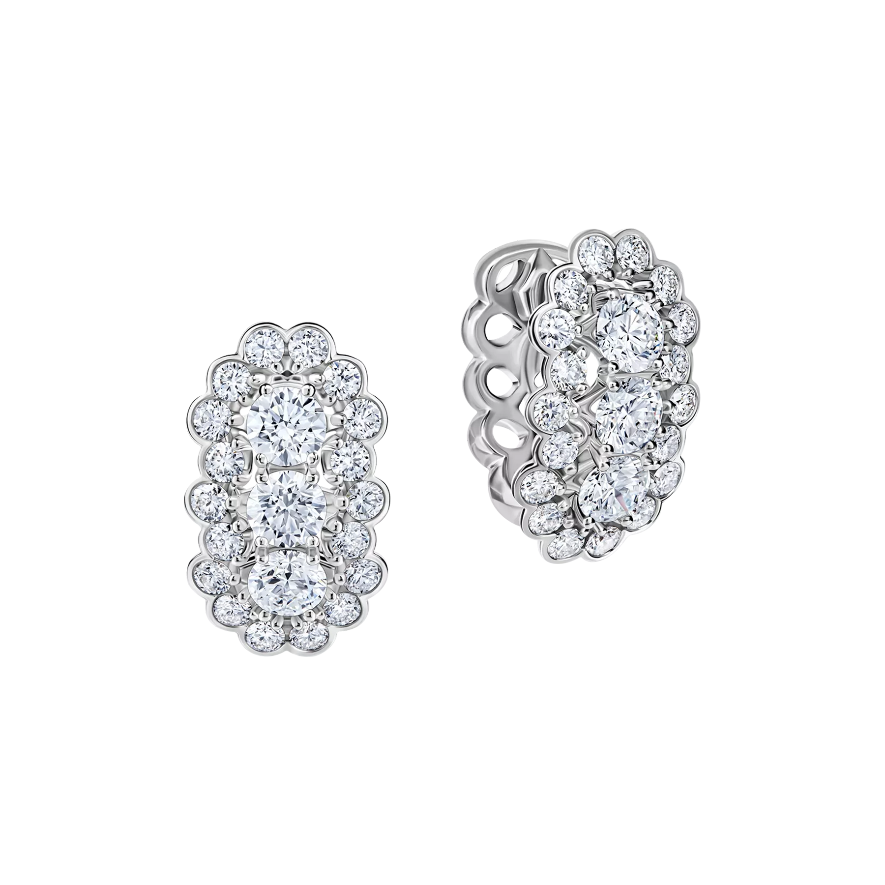 Изящные кружевные серьги из коллекции Classic станут эффектным завершением образа в стиле casual chic. 42 бриллианта различной каратности вписаны в многоуровневую композицию, позволяющую свету свободно проникать в каждый драгоценный камень. Легкая и безупречно-выверенная архитектура украшений в сочетании с высокими характеристиками драгоценных камней раскрывают превосходную дисперсию, рождая фейерверк бриллиантовых искр. Оригинальная форма швензы, повторяющая силуэт серьги, обеспечивает надежное крепление и эргономику.