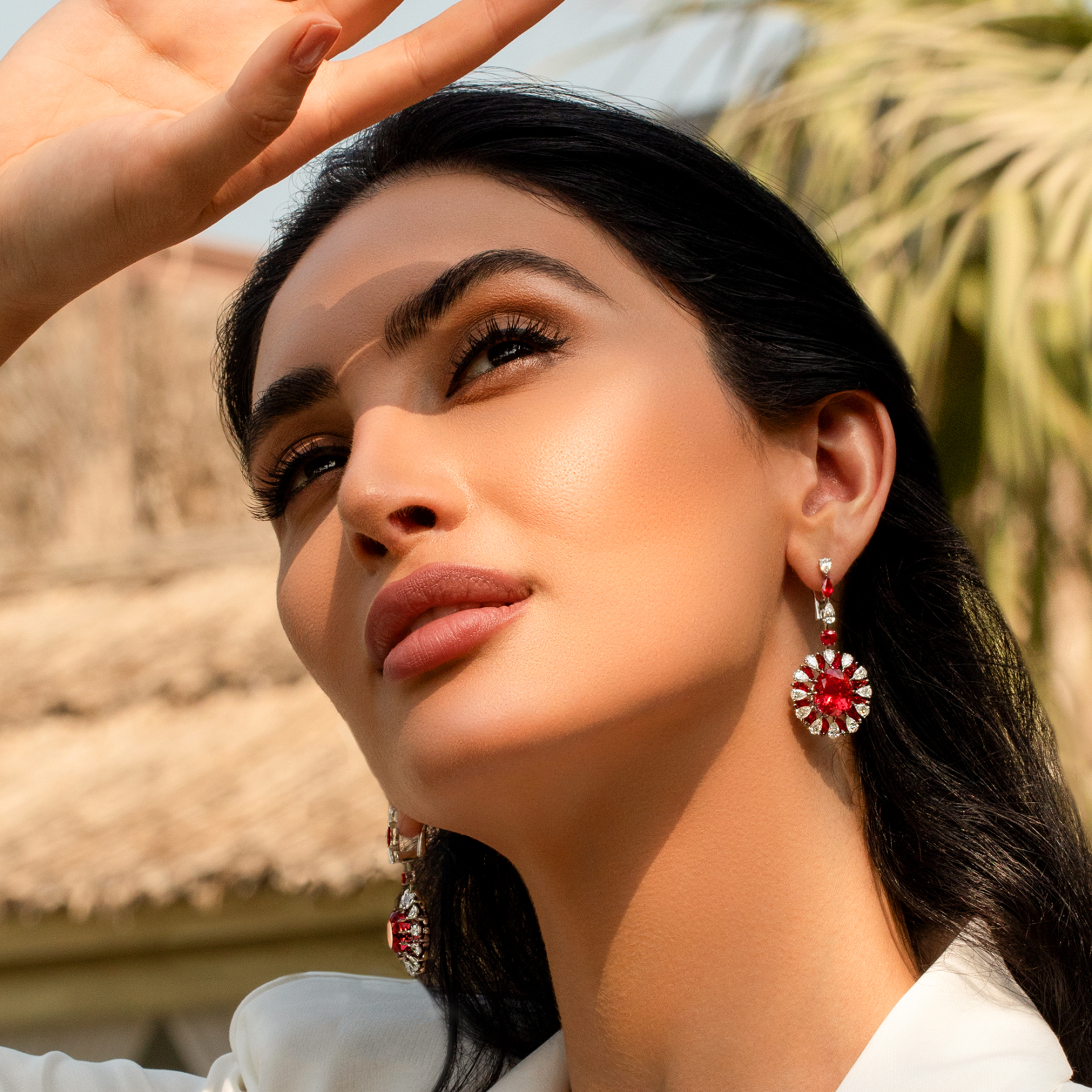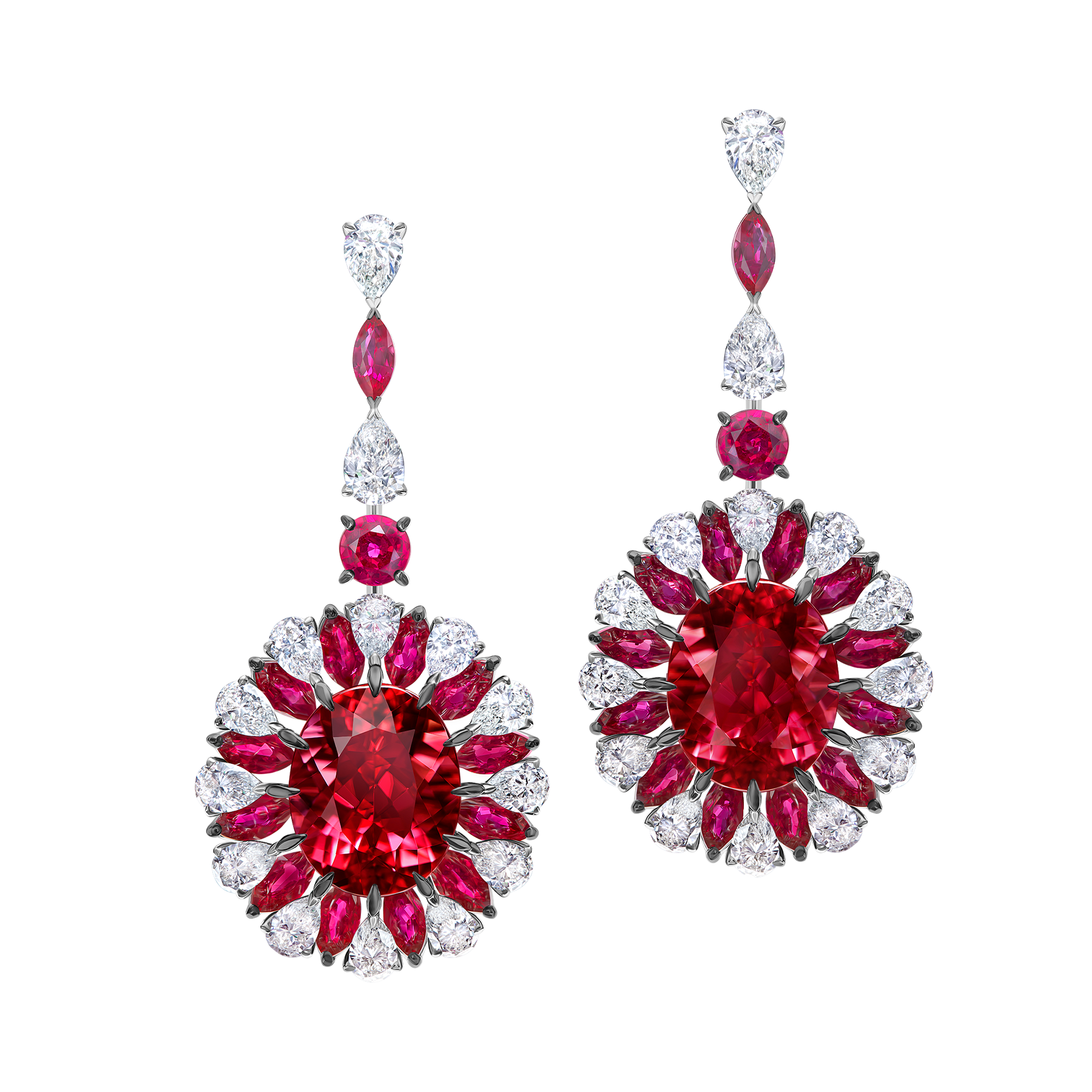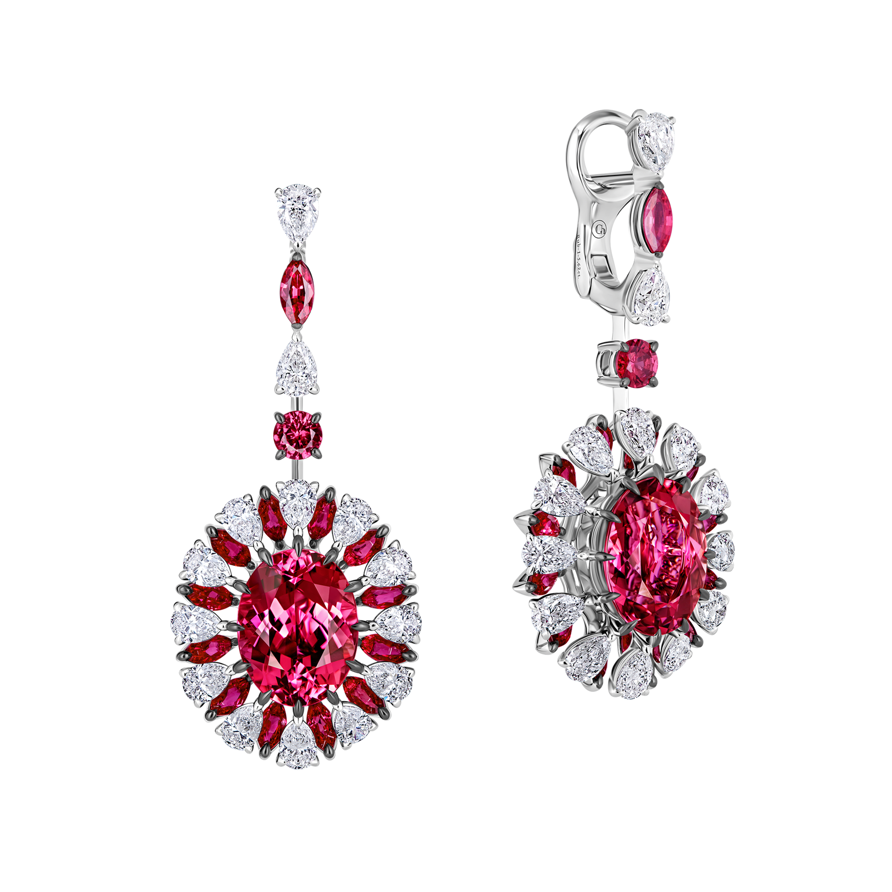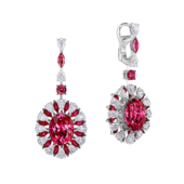 В серьгах из белого золота 750 пробы Rosetta вереницы драгоценных камней выразительно подчеркивают центральные алые турмалины. Этот прием, а также превосходную огранку оценили эксперты международной выставки JUNWEX Moscow-2021. Жюри присудило сету первое место в номинации «Коллекция драгоценностей».