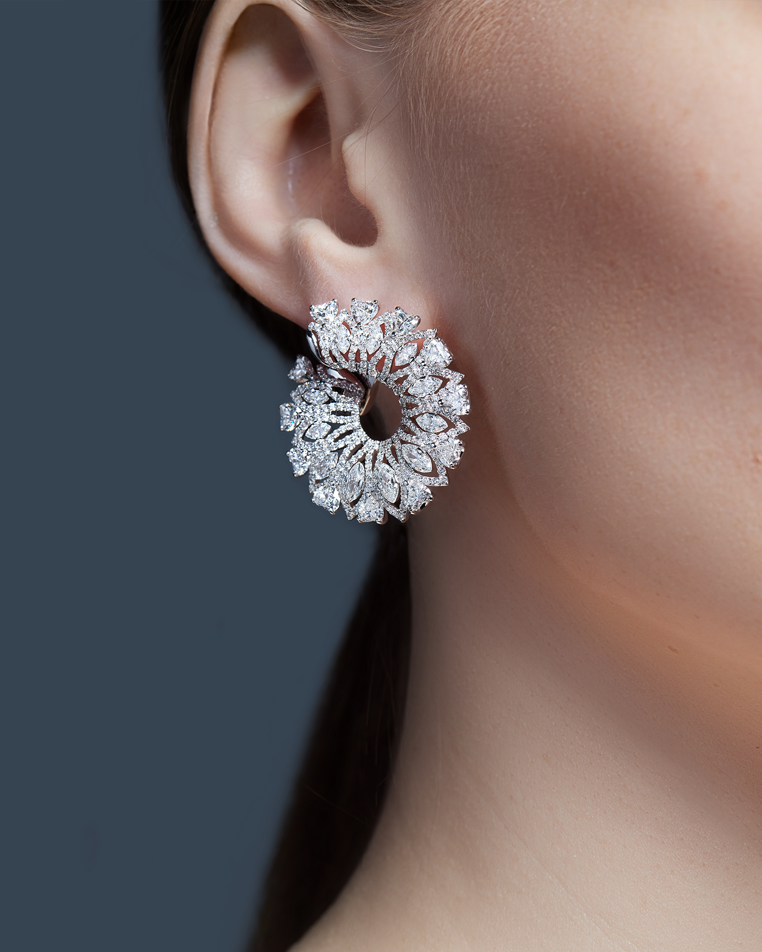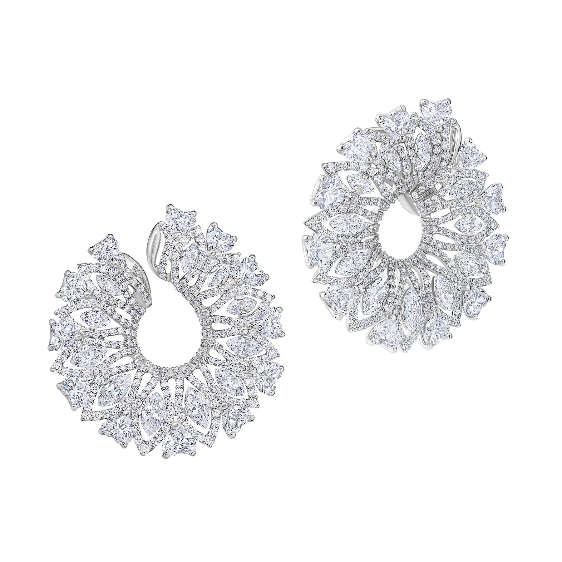 В спиралевидных серьгах NeoCity заключены цикличные очертания бионических форм. Великолепно подобранные 498 бриллиантов общим весом 10,85 ct создают завораживающий эффект.
