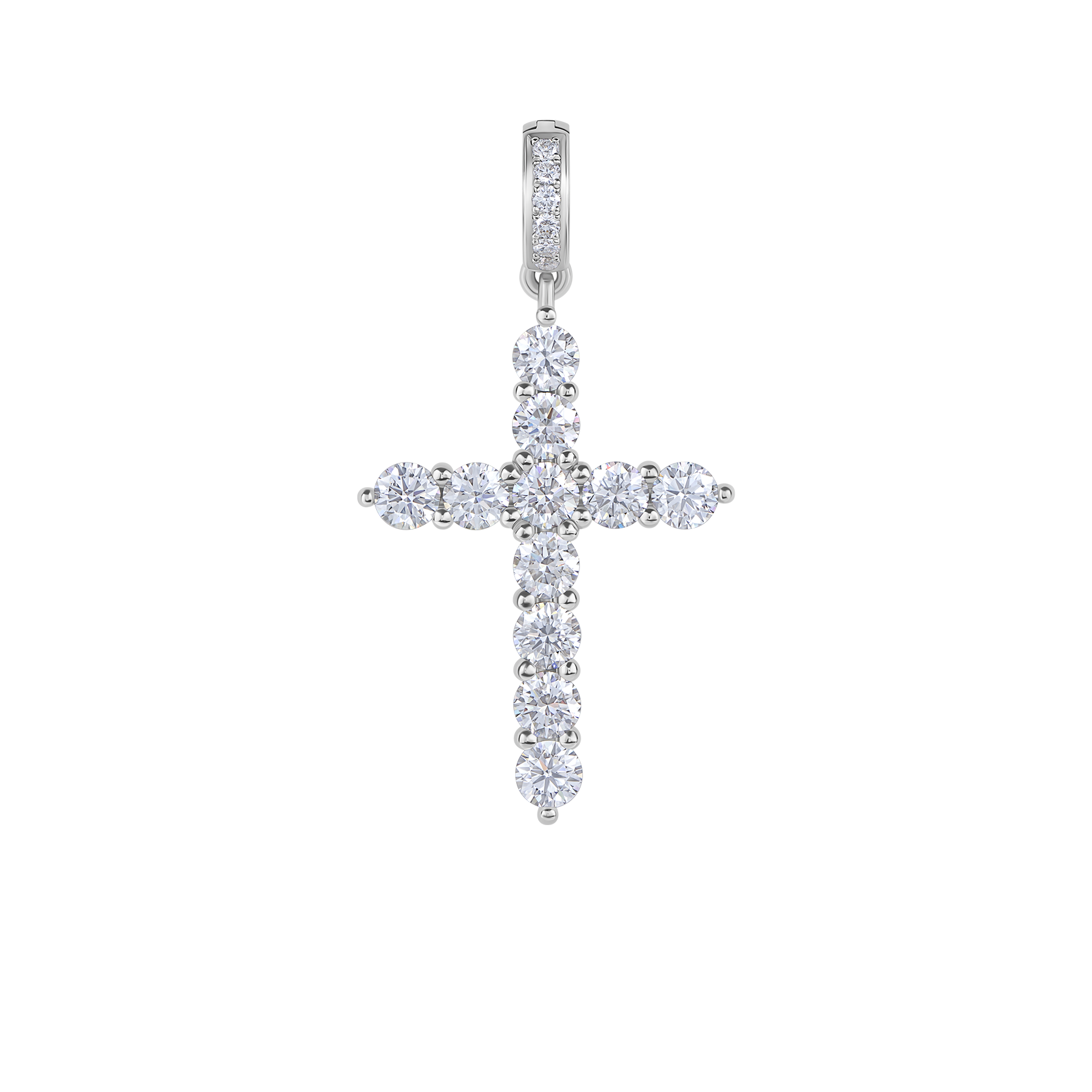 Бриллиантовый кулон-крест — актуальный аксессуар, демонстрирующий утонченный вкус. Безукоризненное сияние семнадцати бриллиантов огранки «круг» общим весом более 2 ct создает стильный образ.
