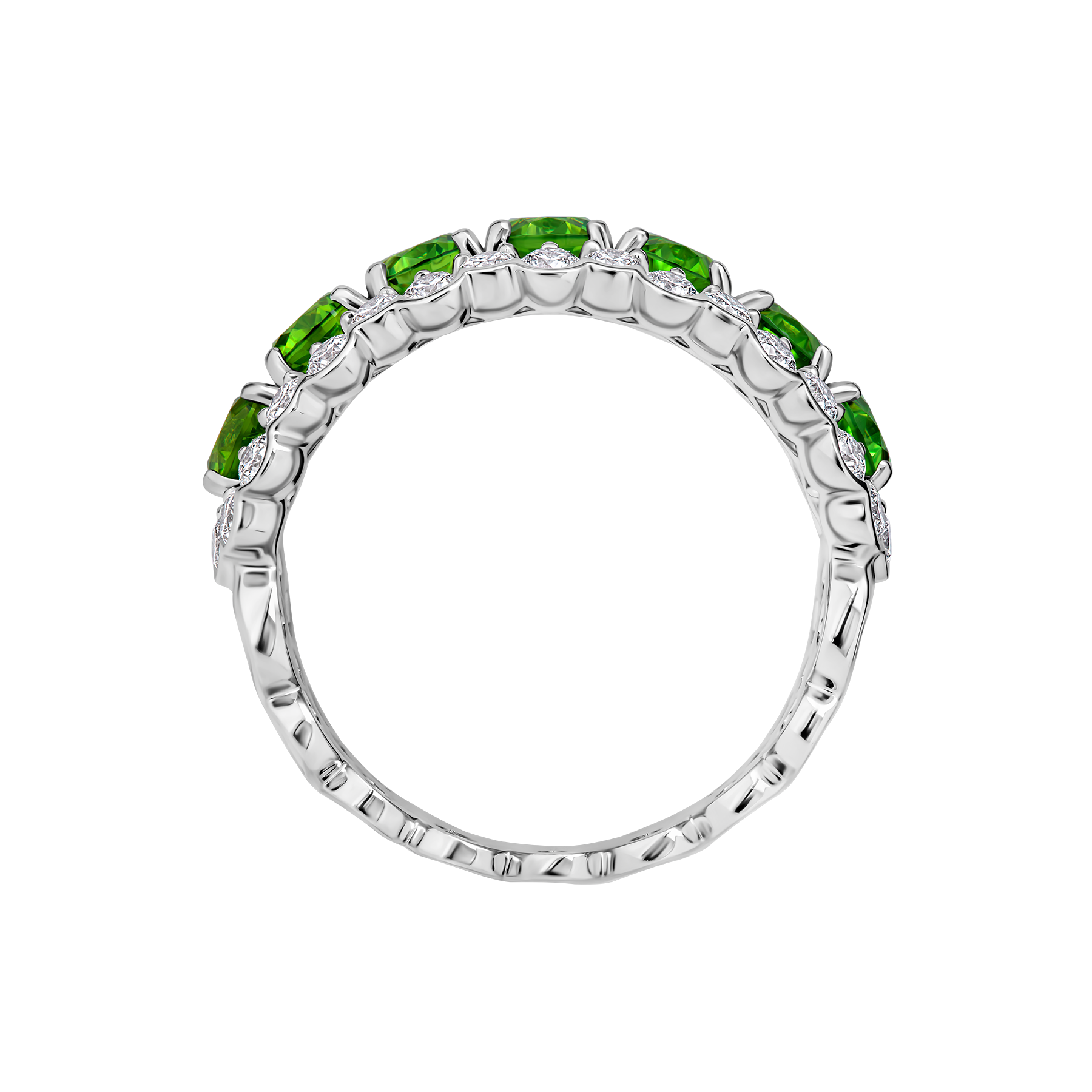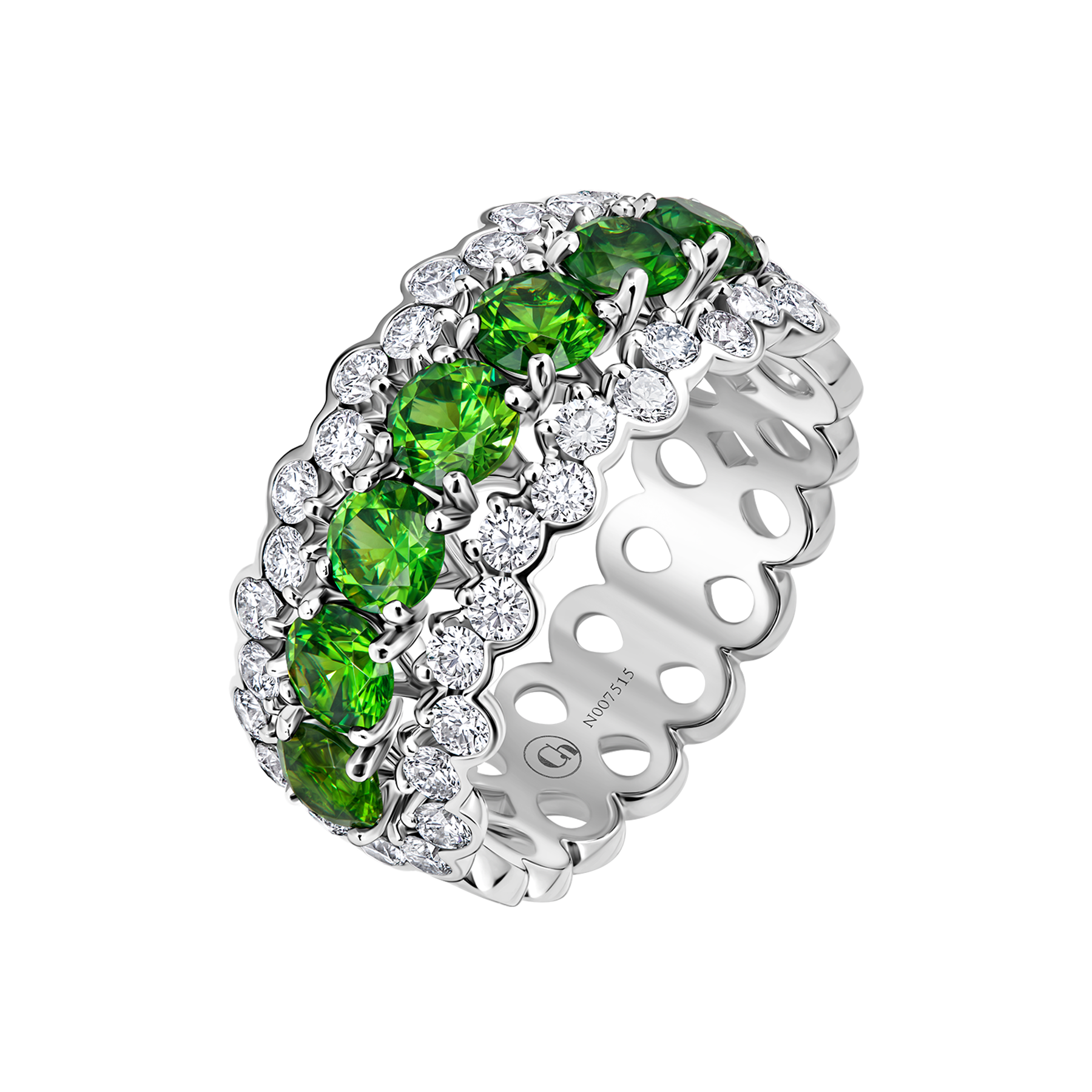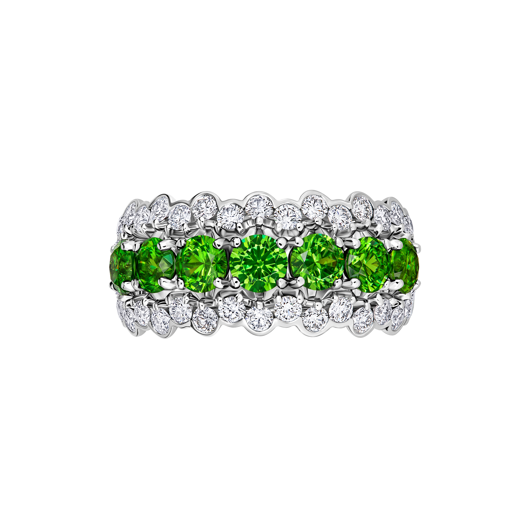 Кольцо с демантоидами и бриллиантами, белое золото