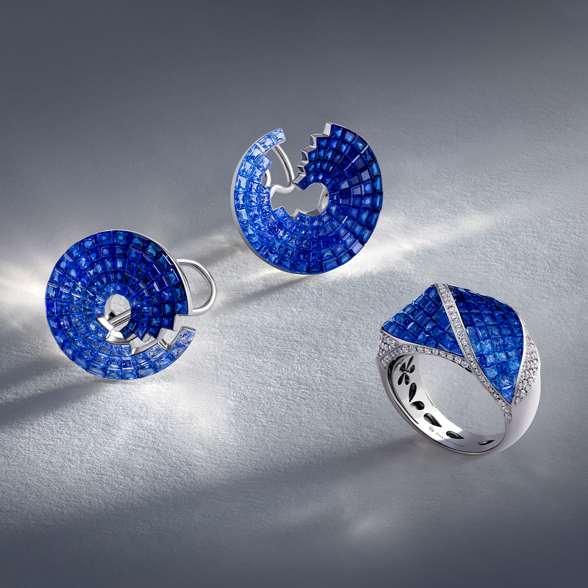 В коллекции INVISIBLE INLAY представлены уникальные ювелирные композиции, вдохновленные природными мотивами и инкрустированные огненными рубинами, насыщенными сапфирами и выразительными цаворитами. Нежные цветы и замысловатые насекомые выполнены в самых разных конфигурациях. Кажущееся случайным расположение лепестков создает чарующий танец вокруг основания благоухающих соцветий, символизируя вечное великолепие природы. Изогнутые формы бабочек подчеркивают беспрецедентное мастерство создателей.