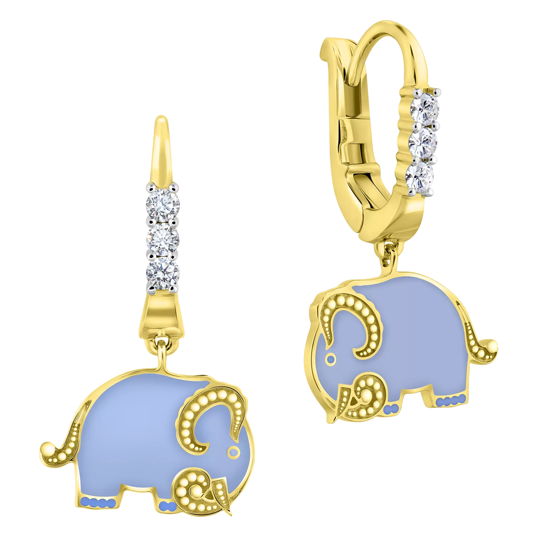 Пусеты с бриллиантами, желтое золото, нанокерамика