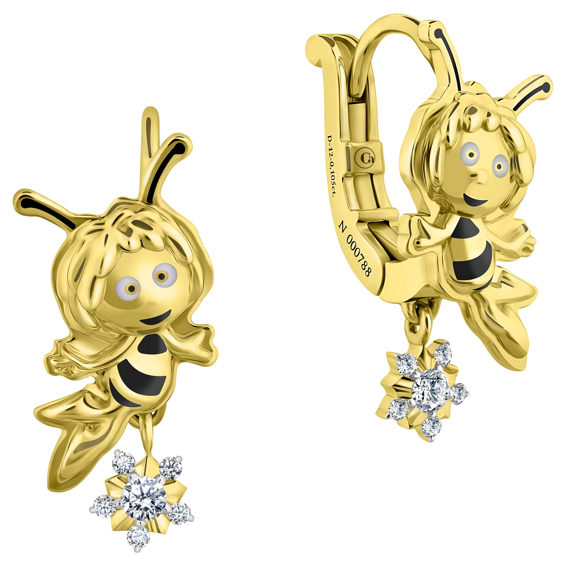 Пусеты с бриллиантами, желтое золото, нанокерамика